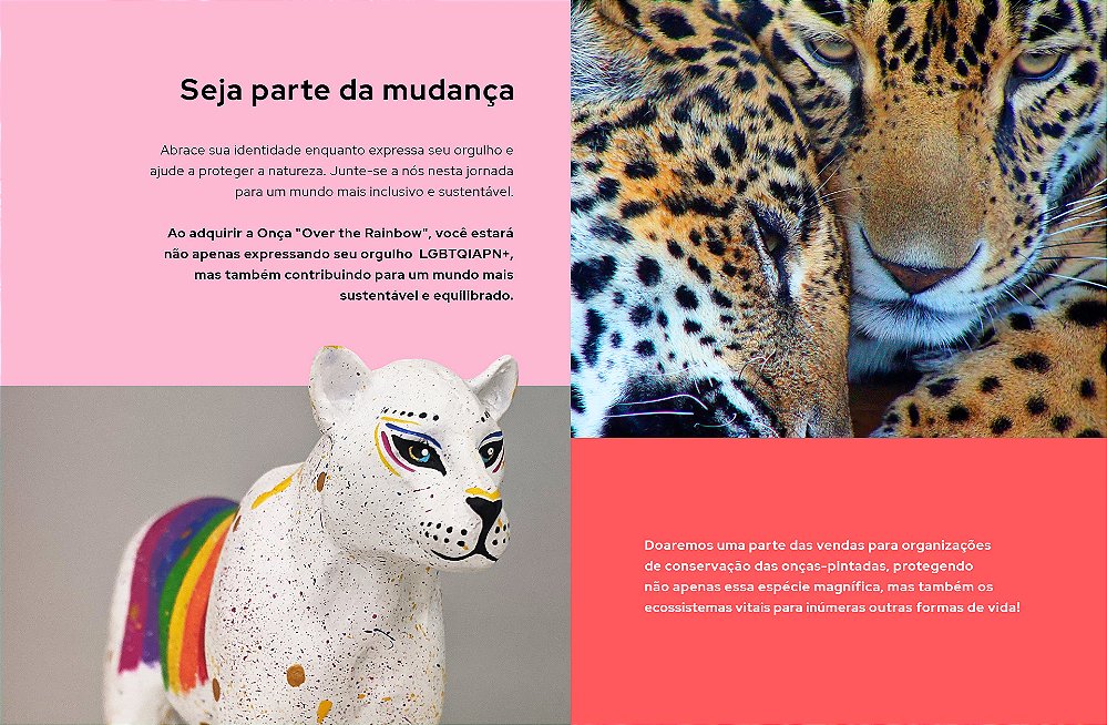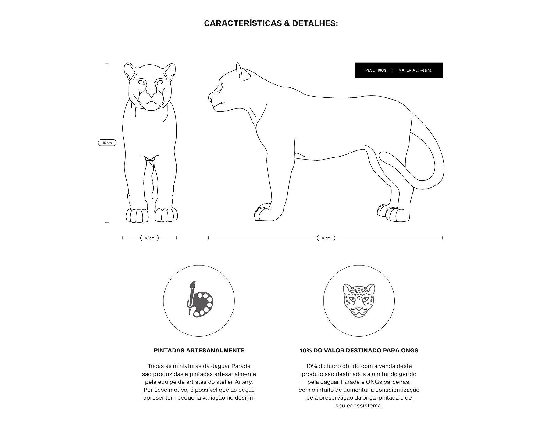 10% do lucro obtido com a venda deste produto serão destinados a um fundo gerido pela Jaguar Parade e serão usados para aumentar a conscientização pela preservação da onça-pintada e de seu ecossistema por meio da arte e também para apoiar ações práticas de preservação em parceria com ONGs engajadas nesta causa.